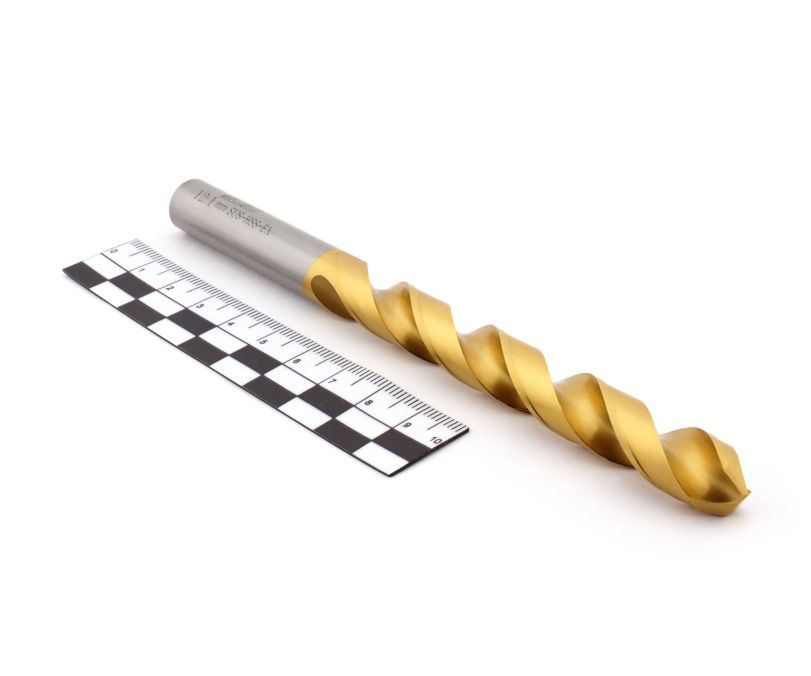 Спиральное сверло по металлу диаметром 12,1 мм, угол при вершине режущей кромки 135°, общая длина сверла 151 мм, длина режущейчасти 101 мм. Сверло изготовлено из быстрорежущей стали SUS HSS-EX (содержание Кобальта 6%) и предназначено для сверления отверстий в изделиях из нержавеющих и жаропрочных сталей. Для увеличения износостойкости сверла применено покрытие из Нитрида Титана (TiN).