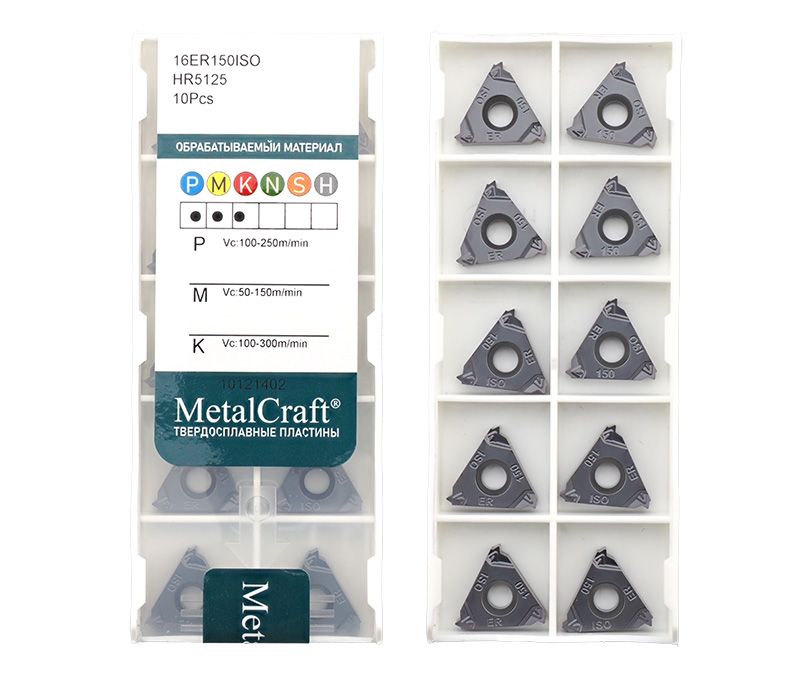 Твердосплавная сменная пластина 16ER-150ISO-HR5125 используется для нарезания наружной метрической резьбы 60° в заготовках из стали, нержавеющей стали, чугуна.