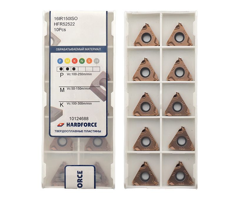 Твердосплавная сменная пластина 16IR-150ISO-HFR52522 используется для нарезания внутренней метрической резьбы 60° в заготовках нержавеющей стали.