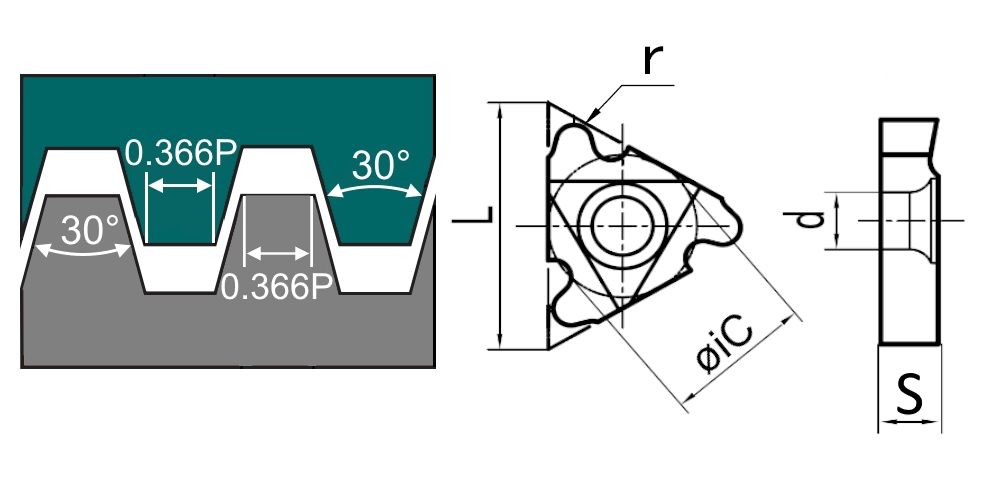 Сменная твердосплавная пластина 16NR-10RD-DM215 по металлу. Используется для нарезания круглой резьбы RD 30° DIN 405. Направление резьбы — IR/RN - внутренняя правая . Шаг резьбы — 10 ниток на дюйм. Обрабатываемый материал — P,M,K (Сталь, Нержавеющая сталь, Чугун).