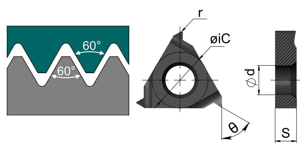 Сменная твердосплавная пластина 16NR-8UN-DM215 для нарезания резьбы типа UN (Американский стандарт) полный профиль, 60° по металлу. Тип резбы — IR/RN - внутренняя правая. Шаг резьбы — 8 ниток на дюйм. Обрабатываемый материал — P,M,K (Сталь, Нержавеющая сталь, Чугун).