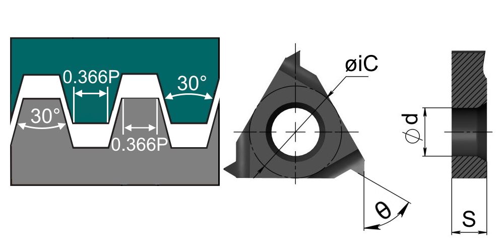 Сменная твердосплавная пластина 22ER-5.0TR-DM215 по металлу. Используется для нарезания наружной резьбы по типу Трапецеидальная резьба, 30°. Направление резьбы - ER/RW - наружная правая; шаг 5 мм.