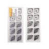 Сменная пластина 2NU-DNGA150404-KBN910 используется для токарной получистовой обработки чугуна. Конструктивно представляет собой основу из твердого сплава, на одной стороне которой установлены две напайки из сверхтвердого материала PCBN без защитного покрытия. Форма пластины - D (ромб 55°). Негативная геометрия, задний угол N (0°). Радиус при вершине 0,4 мм.