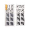 Сменная пластина 2NU-DNGA150604-KBN910 используется для токарной получистовой обработки чугуна. Конструктивно представляет собой основу из твердого сплава, на одной стороне которой установлены две напайки из сверхтвердого материала PCBN без защитного покрытия. Форма пластины - D (ромб 55°). Негативная геометрия, задний угол N (0°). Радиус при вершине 0,4 мм.