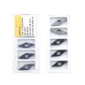 Сменная пластина 2NU-VCGW160408-KBCN700 используется для токарной получистовой обработки закаленной стали. Конструктивно представляет собой основу из твердого сплава, на одной стороне которой установлены две напайки из сверхтвердого материала PCBN с защитным покрытием. Форма пластины - V (ромб 35°). Позитивная геометрия, задний угол C (7°). Радиус при вершине 0,8 мм.