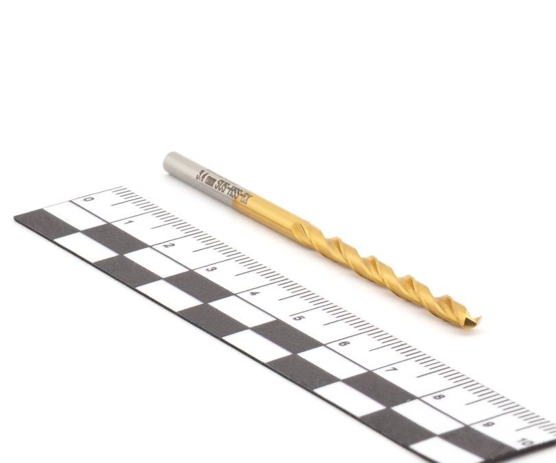 Спиральное сверло по металлу диаметром 3,4 мм, угол при вершине режущей кромки 135°, общая длина сверла 70 мм, длина режущейчасти 39 мм. Сверло изготовлено из быстрорежущей стали SUS HSS-EX (содержание Кобальта 6%) и предназначено для сверления отверстий в изделиях из нержавеющих и жаропрочных сталей. Для увеличения износостойкости сверла применено покрытие из Нитрида Титана (TiN).