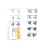 Сменная пластина 3NU-TCGW110208-KBN910 используется для токарной получистовой обработки чугуна. Конструктивно представляет собой основу из твердого сплава, на одной стороне которой установлены три напайки из сверхтвердого материала PCBN без защитного покрытия. Форма пластины - T (треугольник 60°). Позитивная геометрия, задний угол C (7°). Радиус при вершине 0,8 мм.