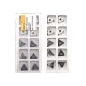 Сменная пластина 3NU-TNGA160404-KBN910 используется для токарной получистовой обработки чугуна. Конструктивно представляет собой основу из твердого сплава, на одной стороне которой установлены три напайки из сверхтвердого материала PCBN без защитного покрытия. Форма пластины - T (треугольник 60°). Негативная геометрия, задний угол N (0°). Радиус при вершине 0,4 мм.