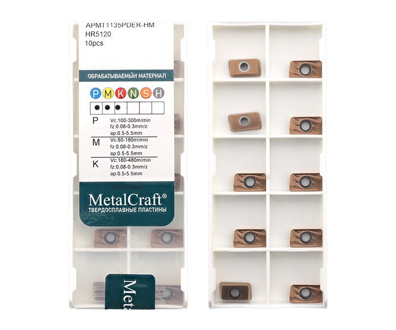 Фрезерная пластина APMT1135PDER-HM-HR5120 бренда MetalCraft применяется для обработки заготовок из стали, нержавеющей стали и чугуна.