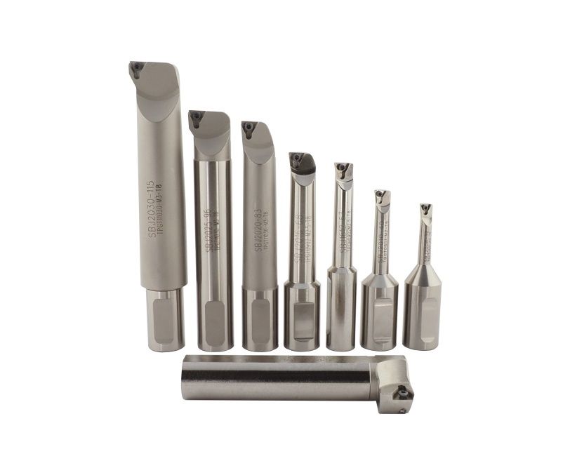 Расточная система BT30-NBH2084-KIT8 (набор) предназначена для чистового растачивания отверстий диаметром от 8 до 280 мм, применяется на станках фрезерной, сверлильной и расточной группы (включая оборудование с ЧПУ). Набор состоит из фрезерного патрона с хвостовиком BT30 (MAS 403, JIS B 6339), расточной головки NBH2084, расточных державок SBJ (8 шт) и комплекта ключей. В зависимости от типа державки используются твердосплавные пластины TBGT или TPGH. Державки SBJ с хвостовиком Weldon надежно фиксируются в корпусе расточной головки при помощи шестигранного болта. Микрометрическая расточная головка NBH2084 снабжена регулировочным винтом со шкалой и позволяет перемещать режущий инструмент с шагом 0,005 мм, максимально точно (до 0,01 мм) устанавливать необходимый диаметр растачивания. Твердосплавные пластины TBGT, TPGH, а также штревельный болт BT-30 в комплект поставки не входят и приобретаются дополнительно.