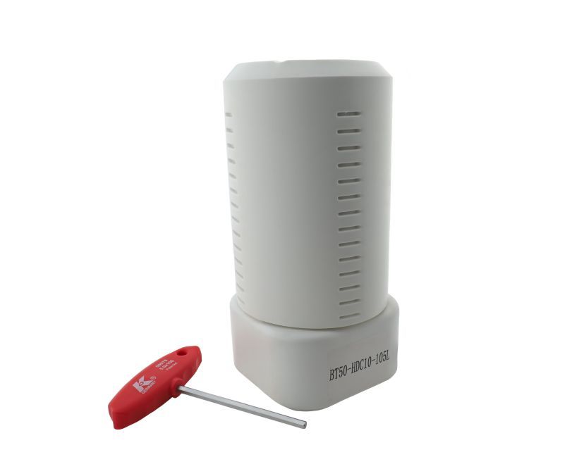Фрезерный гидропластовый патрон BT50-HDC10-105 обеспечивает надежную фиксацию режущего инструмента с цилиндрическим хвостовиком в шпинделе станка. Фиксация инструмента в патроне осуществляется за счет увеличения давления жидкости в специальной полости при помощи регулировочного винта. Номинальный диаметр хвостовика зажимаемого инструмента 10 мм с допуском h6.