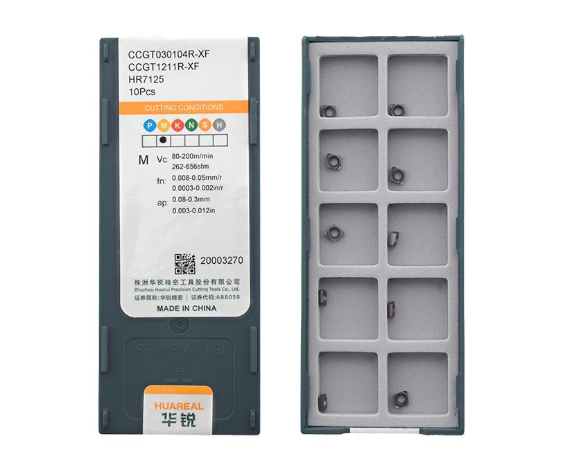 Твердосплавная сменная пластина CCGT030104R-XF-HR7125 применяется для чистовой обработки заготовок из нержавеющей стали.
