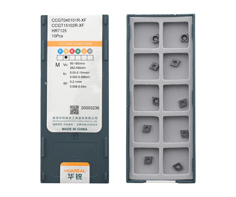 Твердосплавная сменная пластина CCGT040101R-XF-HR7125 применяется для чистовой обработки заготовок из нержавеющей стали.