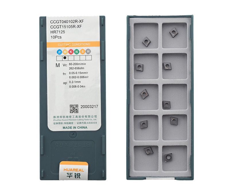 Твердосплавная сменная пластина CCGT040102R-XF-HR7125 применяется для чистовой обработки заготовок из нержавеющей стали.