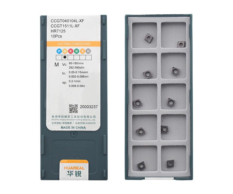 Твердосплавная сменная пластина CCGT040104L-XF-HR7125 применяется для чистовой обработки заготовок из нержавеющей стали.