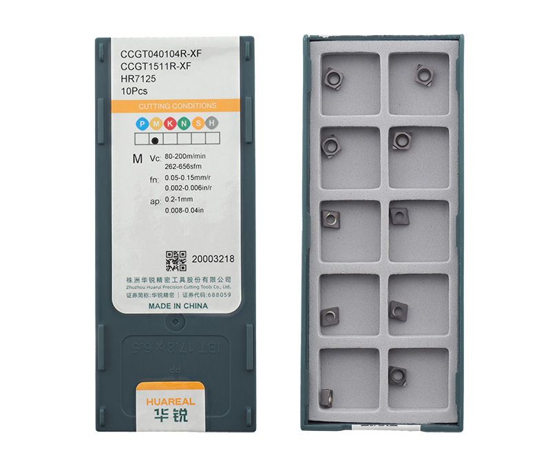 Твердосплавная сменная пластина CCGT040104R-XF-HR7125 применяется для чистовой обработки заготовок из нержавеющей стали.