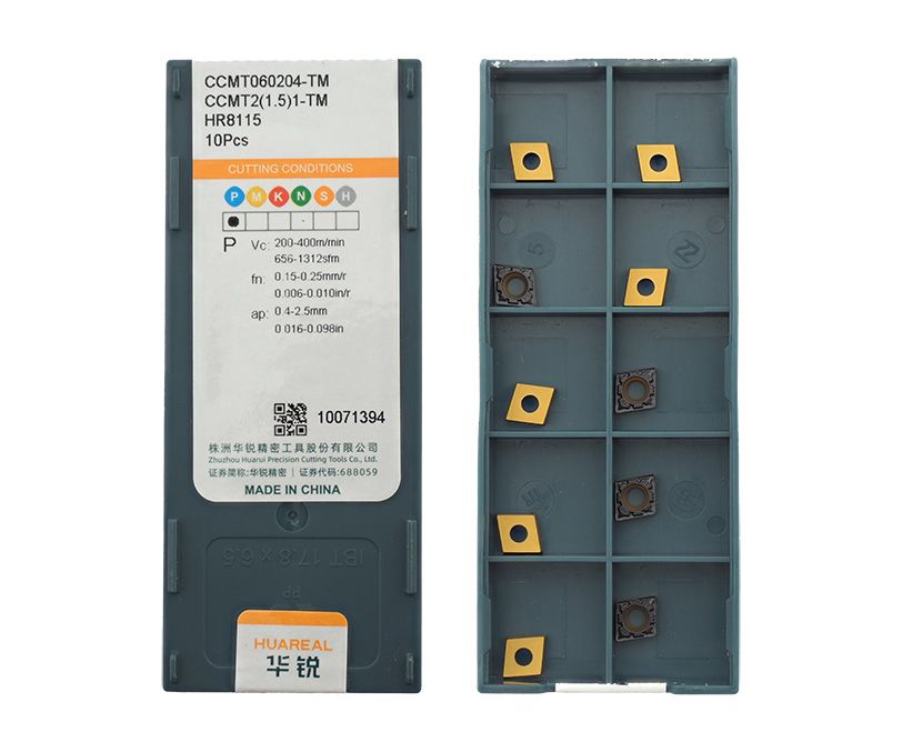 Твердосплавная сменная пластина CCMT060204-TM-HR8115 бренда Huareal применяется для получистовой обработки заготовок из стали.