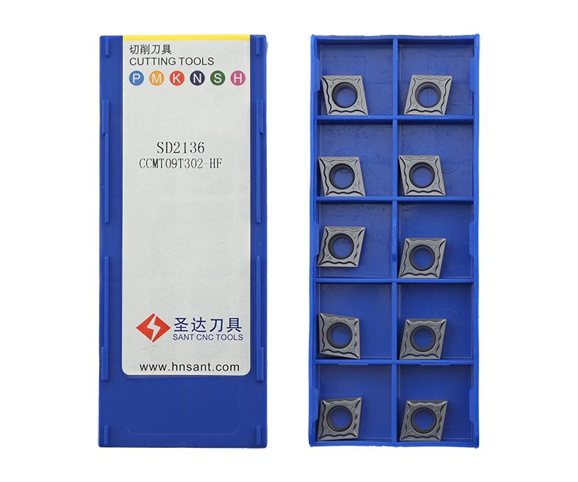 Твердосплавная сменная пластина CCMT09T302-HF-SD2136 бренда Sant применяется для чистовой обработки заготовок из стали, нержавеющей стали и жаропрочных сплавов.