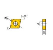 Сменная пластина CNGA120408-ZH-BT6000 используется для токарной получистовой обработки закаленной стали. Конструктивно представляет собой основу из твердого сплава, на одной стороне которой установлены две напайки из сверхтвердого материала PCBN с защитным покрытием. Форма пластины - C (ромб 80°). Позитивная геометрия, задний угол N (0°). Радиус при вершине 0.8.