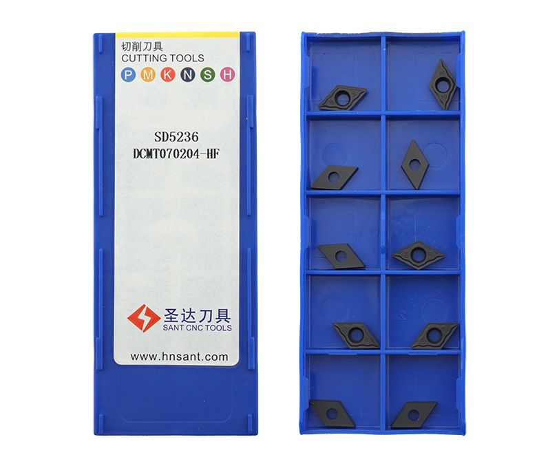 Твердосплавная сменная пластина DCMT070204-HF-SD5236 бренда Sant применяется для чистовой обработки заготовок из стали.