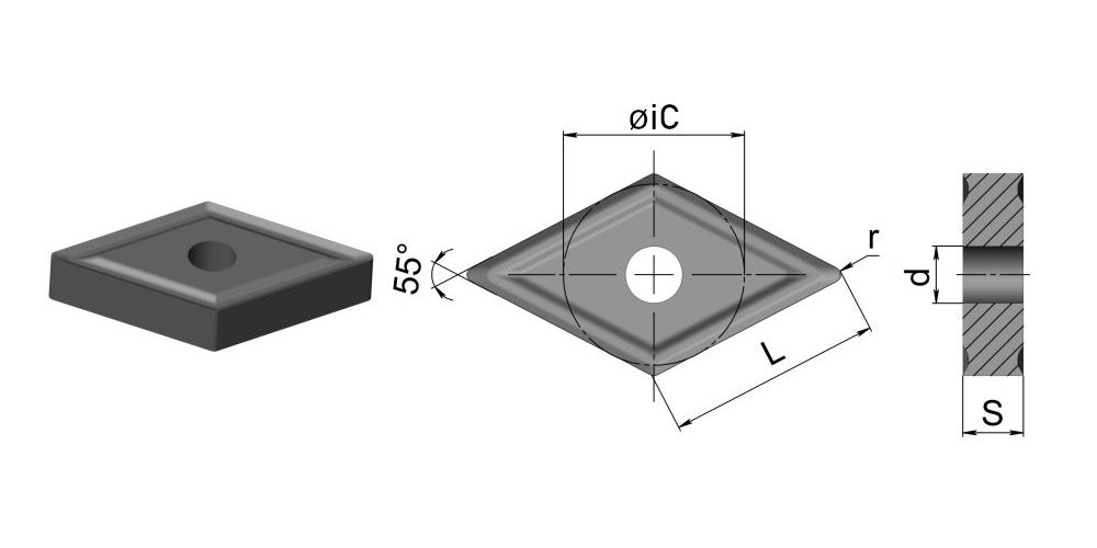 Твердосплавная сменная пластина DNMG150604-GF-HS8125 (Huareal) используется для чистовой обработки стали. Форма пластины D (ромб 55°). Негативная геометрия - задний угол 0°. Радиус при вершине 0.4 мм.