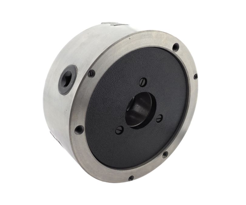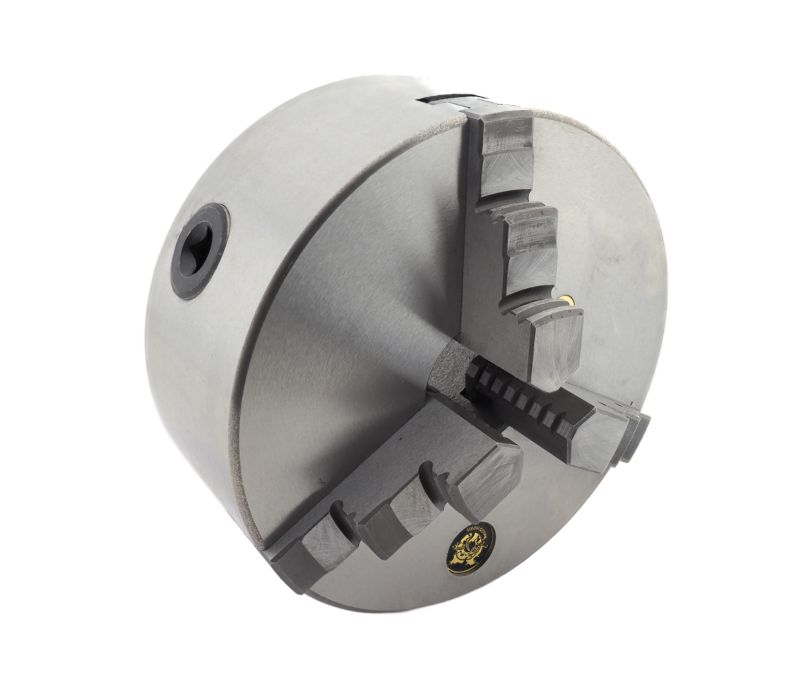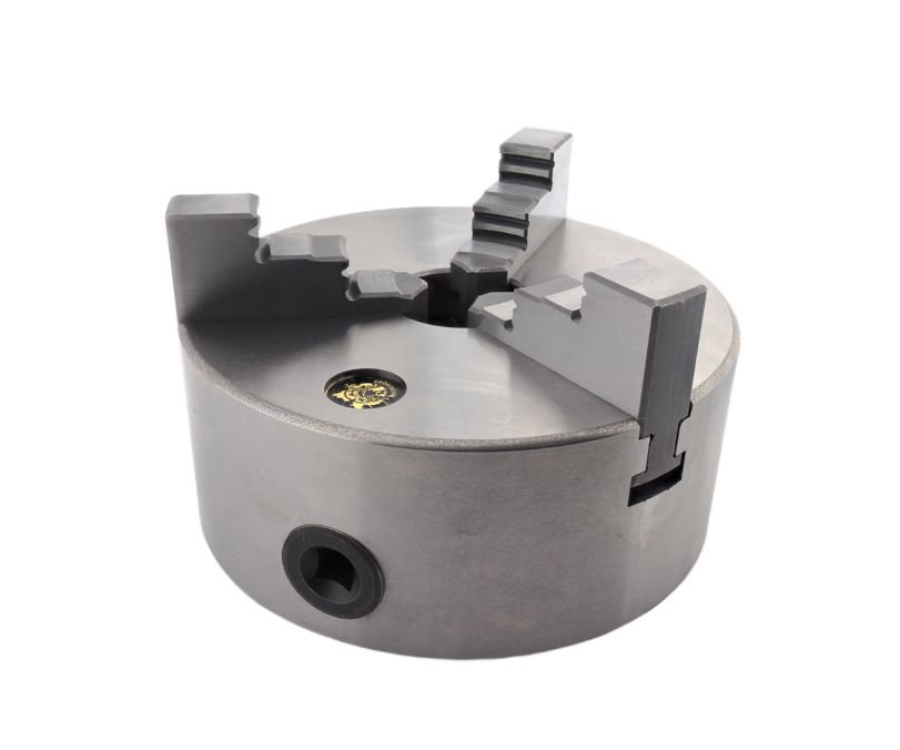 Токарный патрон K11-160 диаметром 160 мм / 6" используется для фиксакции заготовки на шпинделе станка. Максимальная скорость вращения патрона 2500 об/мин. Самоцентрирующийся спирально-реечный механизм с тремя цельными (двусторонними) кулачками обеспечивает быструю и надежную фиксацию деталей цилиндрической или шестригранной формы. Тип посадки патрона - цилиндрический через переходной фланец (ГОСТ 24351, DIN 6350). Корпус патрона изготовлен из серого чугуна (HT300), кулачки - из легированной стали (20CrMnTi). Является аналогом 7100-0005 / 7100-0005П.