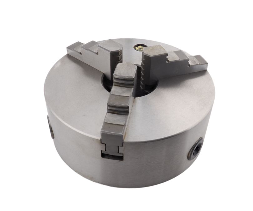 Токарный патрон K11-200 диаметром 200 мм / 8" используется для фиксакции заготовки на шпинделе станка. Максимальная скорость вращения патрона 2000 об/мин. Самоцентрирующийся спирально-реечный механизм с тремя цельными кулачками обеспечивает быструю и надежную фиксацию деталей цилиндрической или шестригранной формы. Тип посадки патрона - цилиндрический через переходной фланец (ГОСТ 24351, DIN 6350). Корпус патрона изготовлен из серого чугуна (HT300), кулачки - из легированной стали (20CrMnTi). Является аналогом 7100-0007 / 7100-0007П
