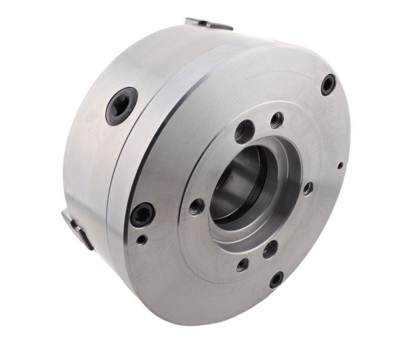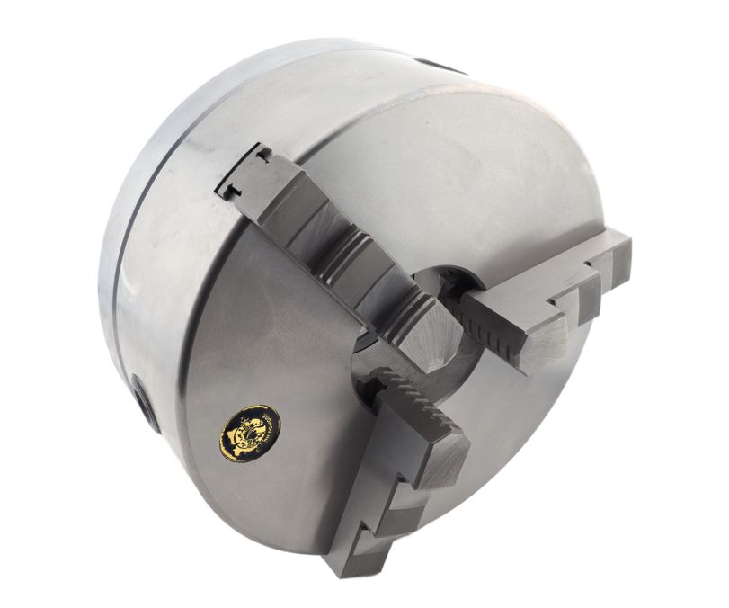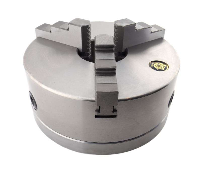 Токарный патрон K11-250 диаметром 250 мм / 10" используется для фиксакции заготовки на шпинделе станка. Максимальная скорость вращения патрона 1600 об/мин. Самоцентрирующийся спирально-реечный механизм с тремя цельными кулачками обеспечивает быструю и надежную фиксацию деталей цилиндрической или шестригранной формы. Тип посадки патрона - цилиндрический через переходной фланец (ГОСТ 24351, DIN 6350). Корпус патрона изготовлен из серого чугуна (HT300), кулачки - из легированной стали (20CrMnTi). Является аналогом 7100-0009 / 7100-0009П.