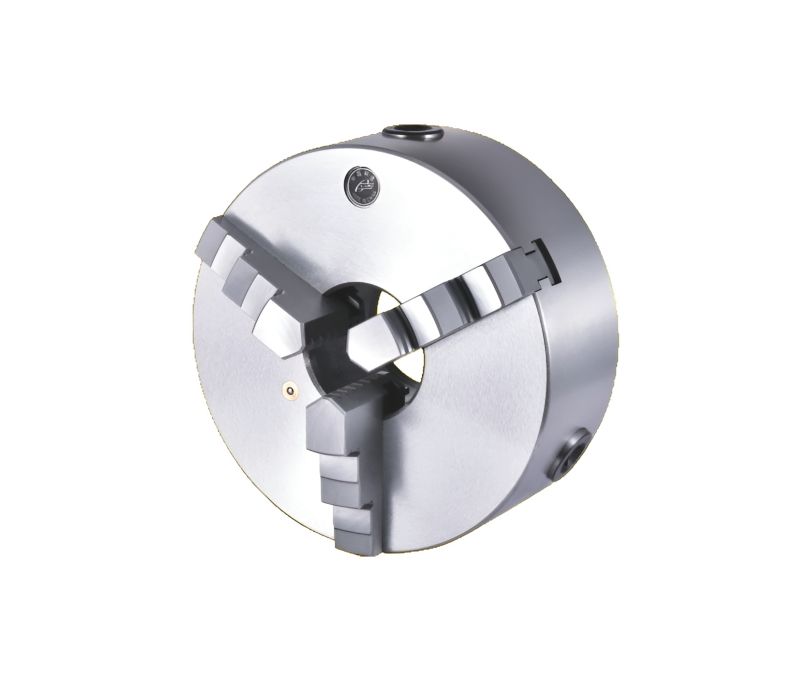Токарный патрон K11-315A диаметром 315 мм / 12" используется для фиксакции заготовки на шпинделе станка. Максимальная скорость вращения патрона 1200 об/мин. Самоцентрирующийся спирально-реечный механизм с тремя цельными (двусторонними) кулачками обеспечивает быструю и надежную фиксацию деталей цилиндрической или шестригранной формы. Тип посадки патрона - цилиндрический через переходной фланец (ГОСТ 24351, DIN 6350). Корпус патрона изготовлен из серого чугуна (HT300), кулачки - из легированной стали (20CrMnTi).