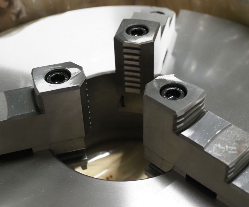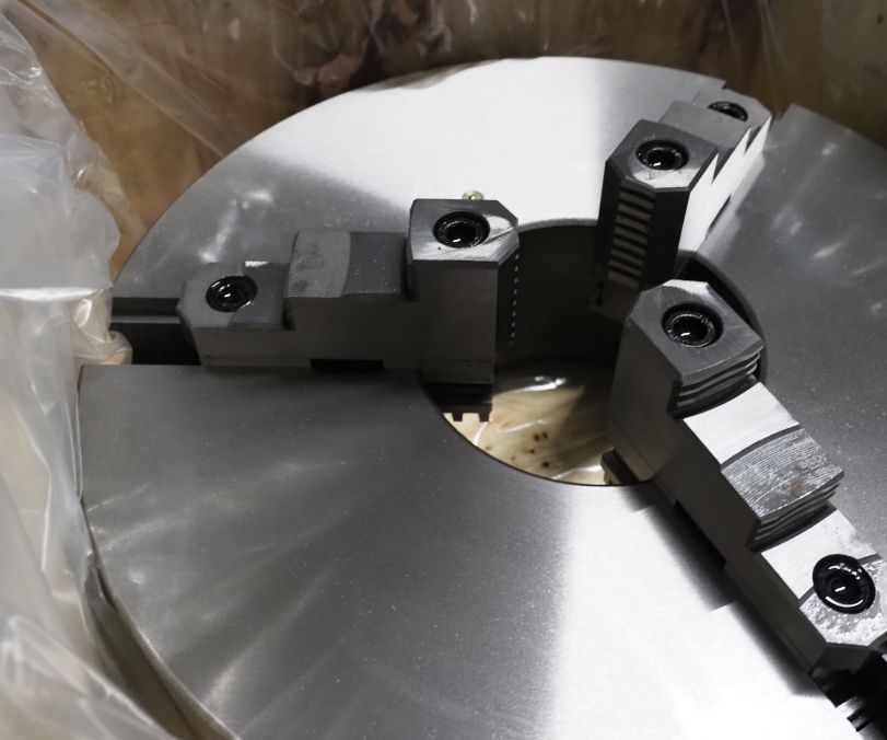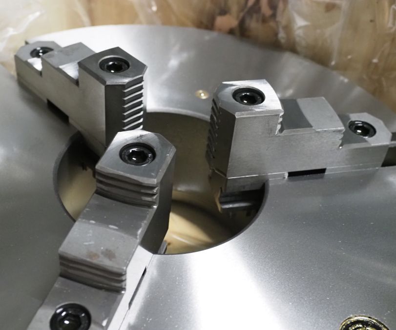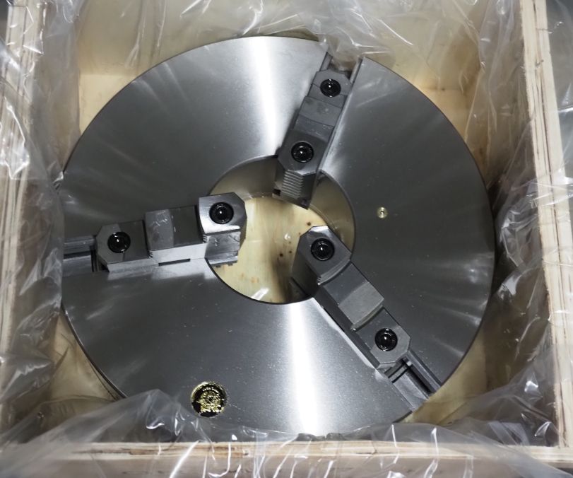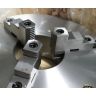 Токарный патрон K11-400C диаметром 400 мм / 15" используется для фиксакции заготовки на шпинделе станка. Максимальная скорость вращения патрона 1000 об/мин. Самоцентрирующийся спирально-реечный механизм с тремя цельными кулачками обеспечивает быструю и надежную фиксацию деталей цилиндрической или шестригранной формы. Тип посадки патрона - цилиндрический через переходной фланец (ГОСТ 24351, DIN 6350). Корпус патрона изготовлен из серого чугуна (HT300), кулачки - из легированной стали (20CrMnTi).