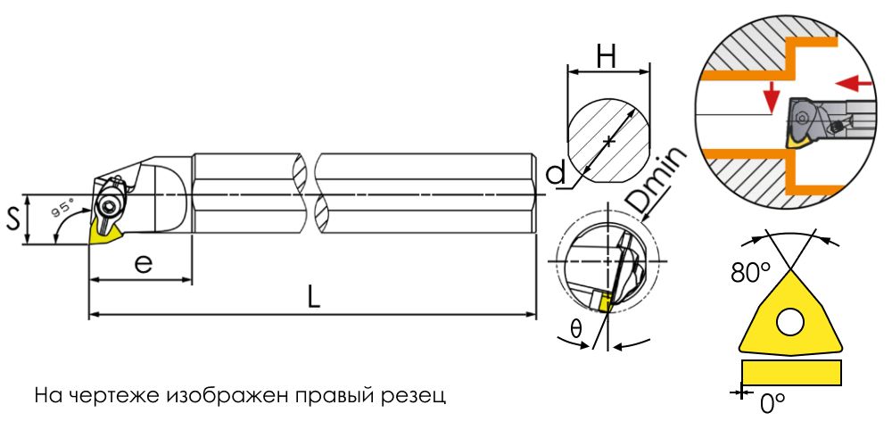 Державка токарная S25T-DWLNL08 предназначена для внутреннего продольного точения с использованием твердосплавных пластин. Исполнение S: стальной хвостовик диаметром 25 мм без канала для подачи СОЖ. Тип применяемых пластин / крепление: WN.. 0804.. / D - Двойной прижим кронштейном. Длина державки: 200 (R) мм, исполнение: L (левое).