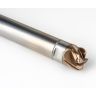 Сменные твердосплавные головки. Радиусные концевые 4-х зубые головки с режущим центром. С резьбовым соединением M5, радиусом 0,5 мм, длинна шейки 12,4 мм, длина режущей части 5,5 мм и углом спирали 40°. Используется для обработки материалов твердостью до 45 HRC (сталь, нержавеющая сталь, чугун, жаропрочные сплавы, закалённая сталь). Для увеличения износостойкости и срока службы инструмента используется высокоэффективное защитное покрытие JF520M.