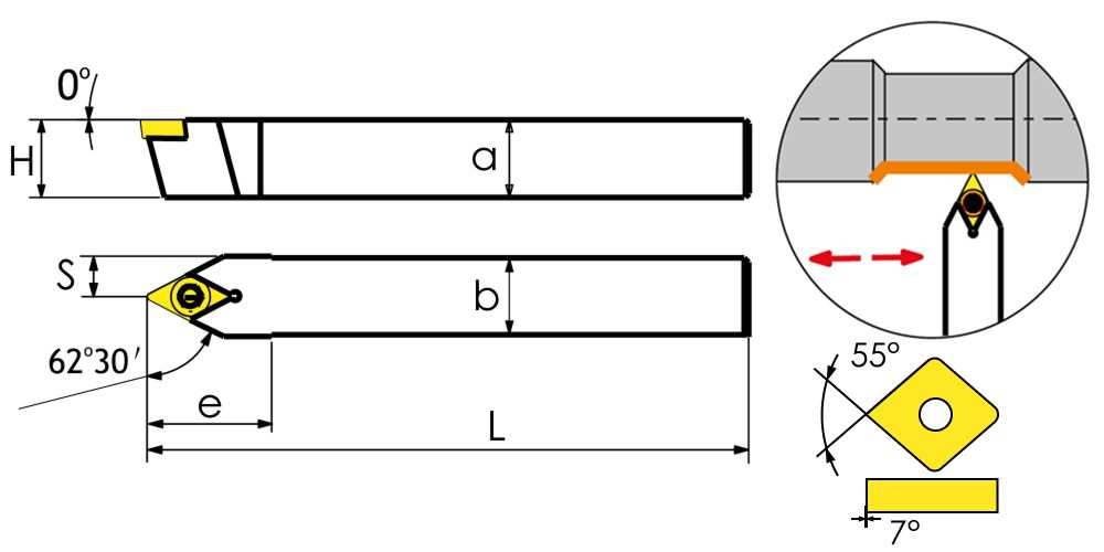 Резец токарный SDNCN2020M11 предназначен для продольного точения с использованием твердосплавных пластин с креплением типа S (фиксация пластины винтом). Для державки токарной SDNCN2020M11 применяются пластины типоразмера DC..T 11T3.., в комплект поставки не входят и приобретаются дополнительно. Исполнение - N (нейтральное), длина в мм -