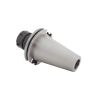 Фрезерный патрон SK50-ER32-080 (DIN 69871, ISO 7388/1) обеспечивает надежную фиксацию режущего инструмента с цилинидрическим хвостовиком в шпинделе станка и используется в сверлильных, фрезерных станках с ЧПУ, обрабатывающих центрах. Фиксация инструмента в корпусе патрона осуществляется при помощи зажимной цанги ER32 (DIN 6499) и гайки типа UM. В зависимости от размера отверстия цанги в патрон устанавливается инструмент с хвостовиком диаметром от 2 до 20 мм. Крепление оправки в шпинделе производится при помощи штревельного болта M24, который не входит в комплект поставки и приобретается дополнительно. Тип подачи СОЖ: АD (через центральное отверстие). Вылет патрона от шпинделя станка составляет 80 мм.