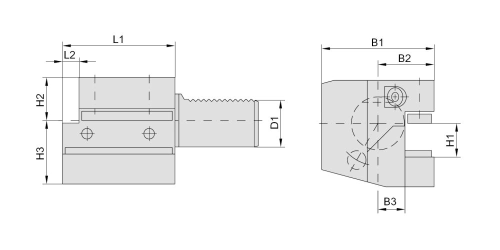 Инструментальный блок VDI THA-C1-302070-ZA используется для фиксации токарных державок (резцов) и применяется для наружной обработки. Конструктивное исполнение держателя : C1: Правое основная опорная поверхность расположена ниже оси вращения шпинделя. Размер VDI: 30 мм. Макс./мин. сечение подходящего резца (H1): 20/16 мм.