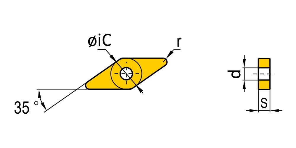 Сменная пластина VNGA160404-ZH-BT3100 используется для токарной получистовой обработки чугуна. Конструктивно представляет собой основу из твердого сплава, на одной стороне которой установлены две напайки из сверхтвердого материала PCBN с защитным покрытием. Форма пластины - V (ромб 35°). Позитивная геометрия, задний угол N (0°). Радиус при вершине 0.4.