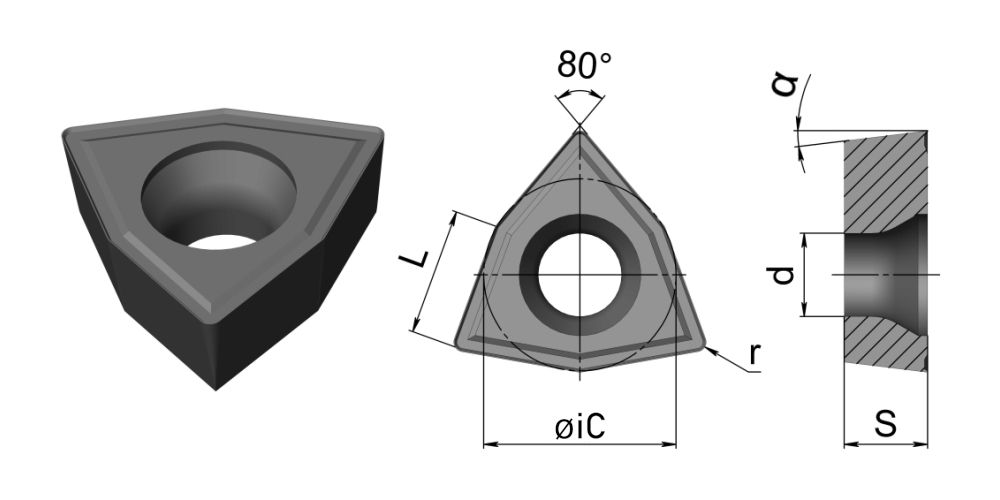 Твердосплавная сменная пластина WCMX030208FN-HS5231 (Huareal) используется для сверления отверстий в заготовках из различных материалов. Защитное покрытие HS5131 позволяет эффективно обрабатывать сталь, нержавеющую сталь и чугун. Форма пластины W (тригональная 80°), длина режущей кромки 3.8 мм, задний угол 7°.