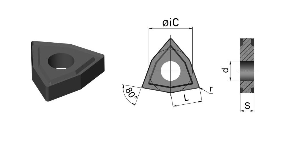Твердосплавная сменная пластина WNMG080408R-M-HS8225 (Huareal) используется для чистовой обработки стали. Форма пластины W (тригональная 80°). Негативная геометрия - задний угол 0°. Радиус при вершине 0.8 мм.