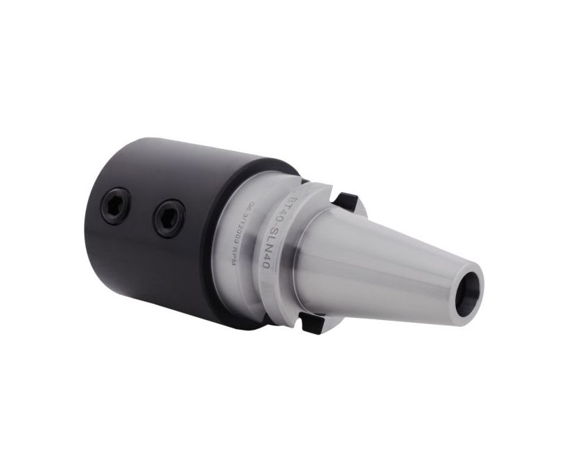 Патрон BT40-SLN40-100 предназначен для фиксации режущего инструмента с цилиндрическим хвостовиком Weldon диаметром 40 мм, используется сверлильных, фрезерных станках с ЧПУ и обрабатывающих центрах. Для зажима инструмента используются два винта с шестигранной головкой. Фиксация хвостовика BT40 (MAS 403, JIS B 6339) в шпинделе производится при помощи штревельного болта M16, который не входит в комплект поставки и приобретается дополнительно. Тип подачи СОЖ: АD (через центральное отверстие). Вылет патрона от шпинделя станка составляет 100 мм.