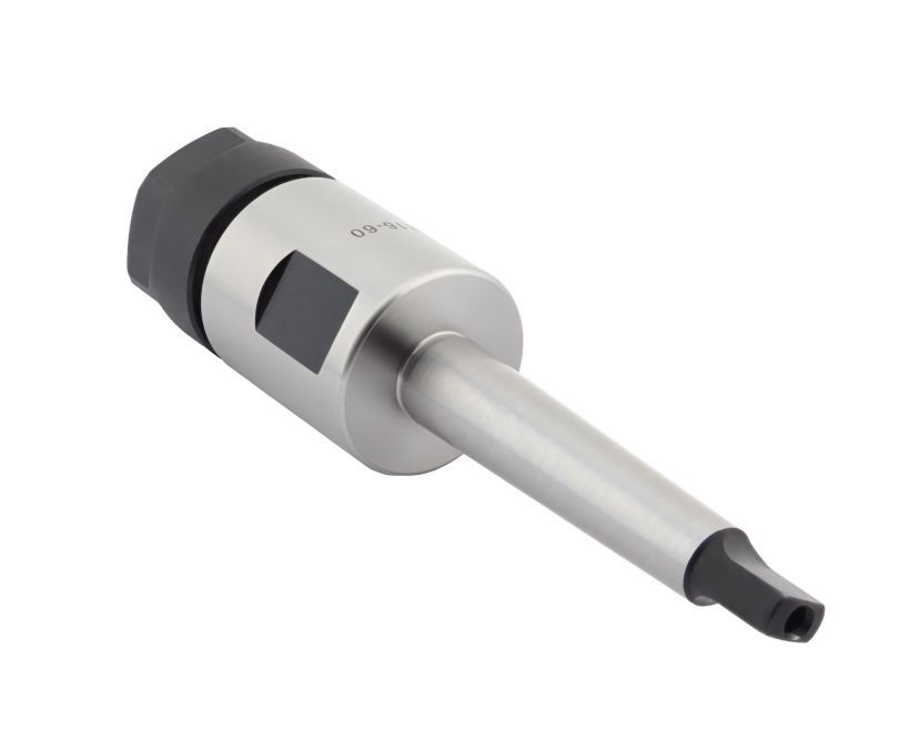 Фрезерный патрон MTA1-ER16-060 (ISO 296, DIN 228) предназначен для фиксации режущего инструмента с цилиндрическим хвостовиком. Данный тип патронов используется для выполнения операций сверления. Установка режущего инструмента в корпус патрона осуществляется при помощи зажимной цанги ER16 (DIN 6499) и гайки типа A. В зависимости от размера посадочного отверстия цанги в патрон устанавливается сверло с диаметром хвостовика от 1 до 10 мм. Вылет патрона от шпинделя станка составляет 60 мм. Конструкция без подачи СОЖ.